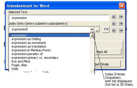 IndexAssistant is software that tremendously improves Microsoft Word’s native indexing functions. Use its intelligent and powerful interface to help you view, maintain and apply a consistent set of index entries; keep track of the structure of your index as you build it; mark ranges of pages with one click; consolidate scattered single page index entries into ranges with one click; navigate and edit index entries in your document; and maintain cross references. A tremendous time and organizational saving over Word’s own interface when it comes time to index a manuscript.